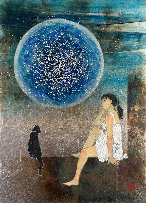 麻紙、銀箔、岩絵具、膠