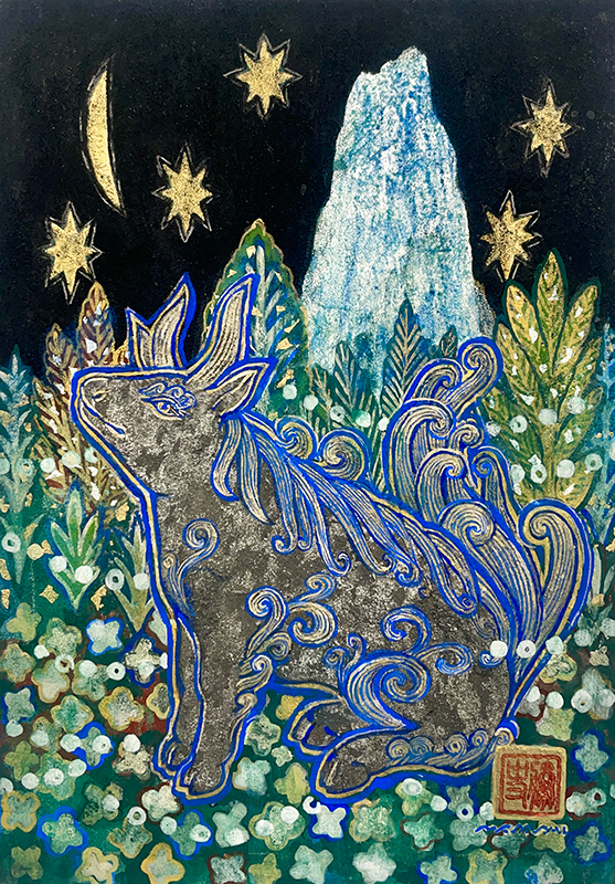 和紙、岩絵具、金属箔、染料