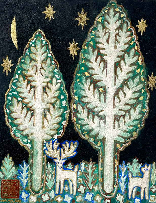 和紙、岩絵具、金属箔、染料