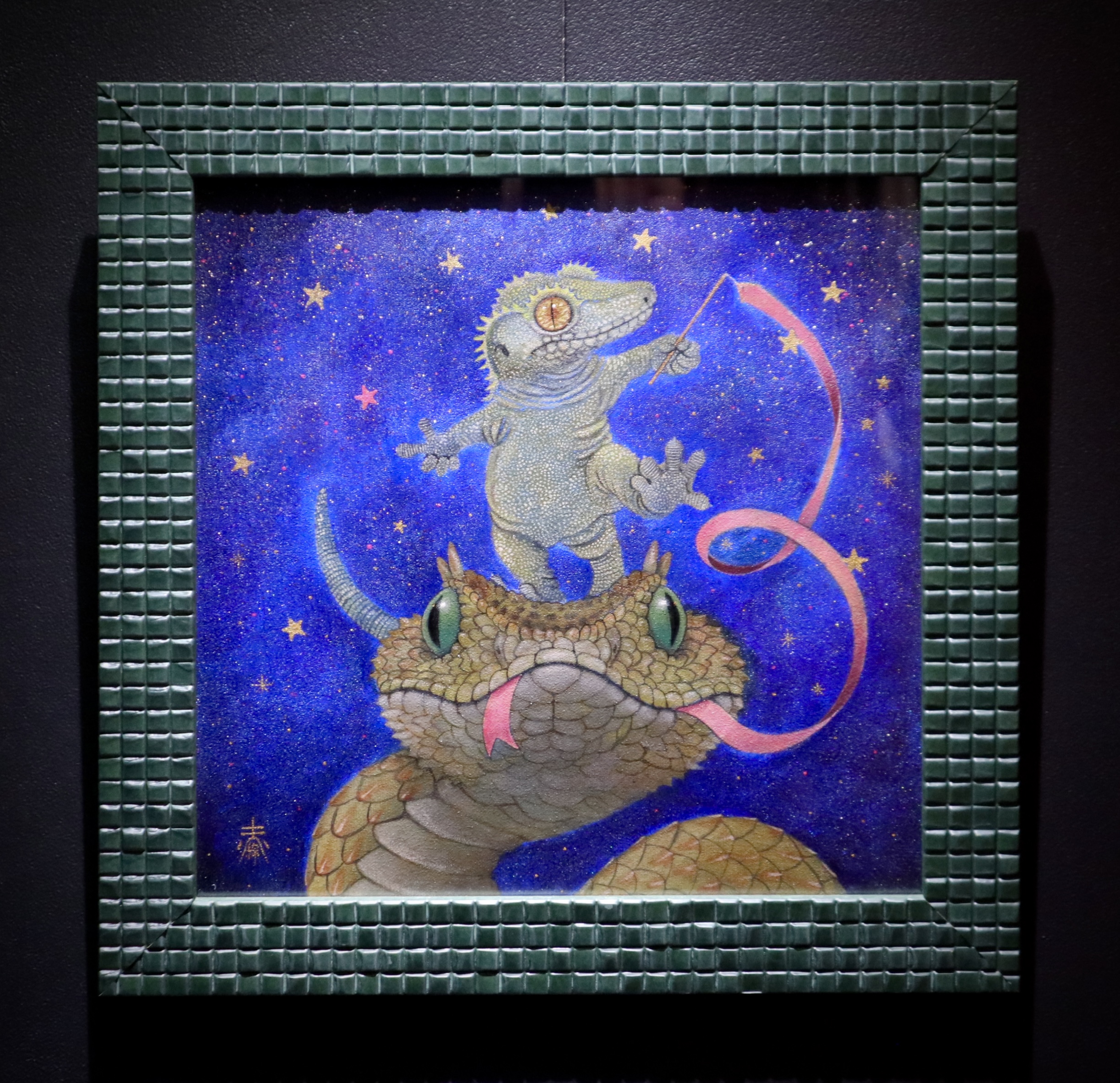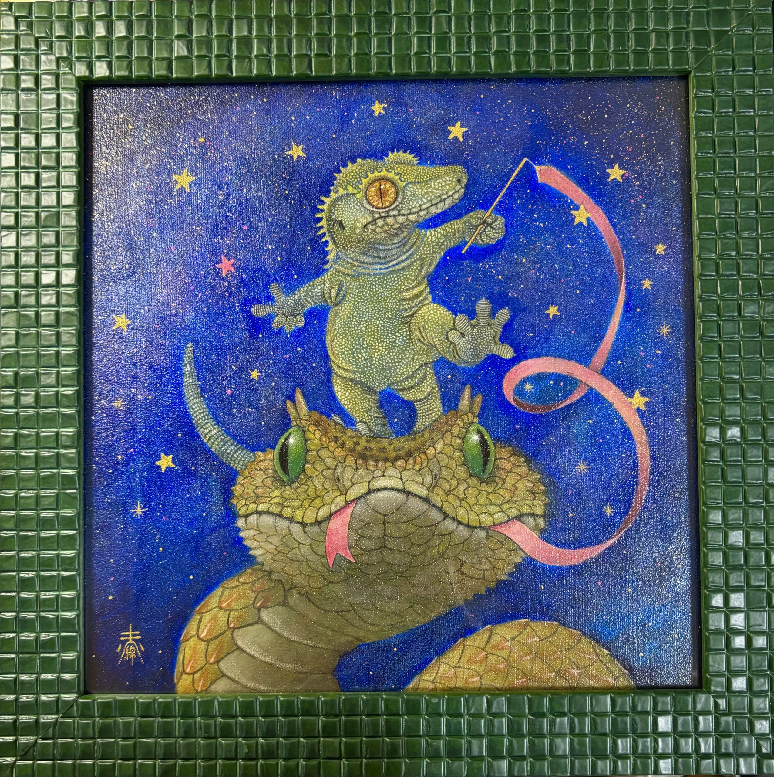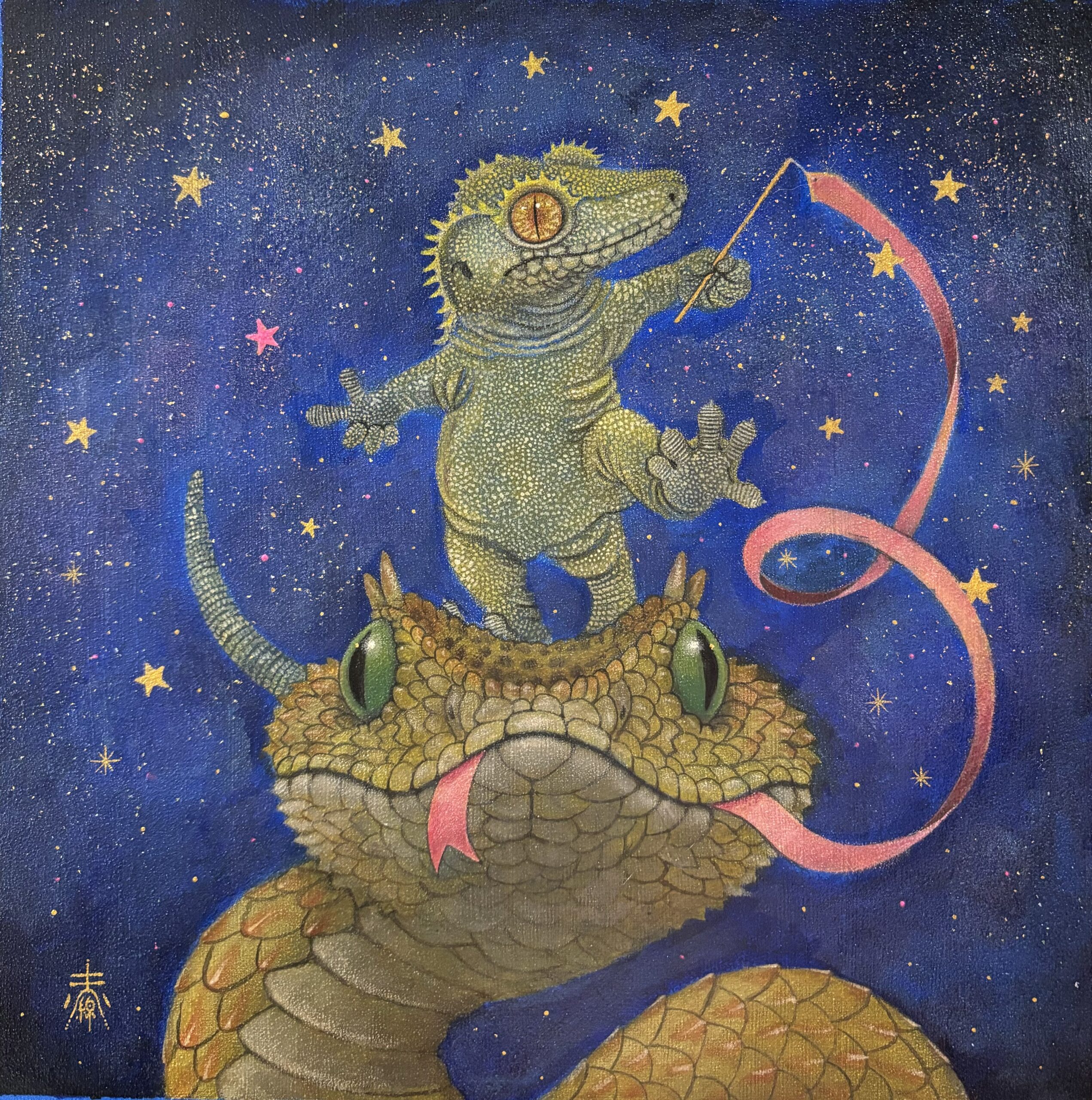 アクリル絵具、金箔、パール粉
