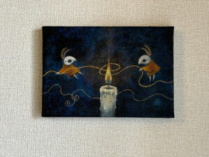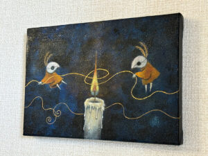 キャンバス、アクリル絵具、金箔、夢
