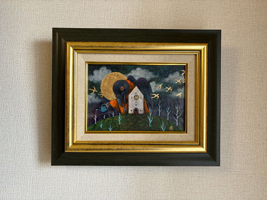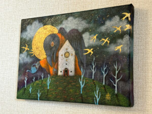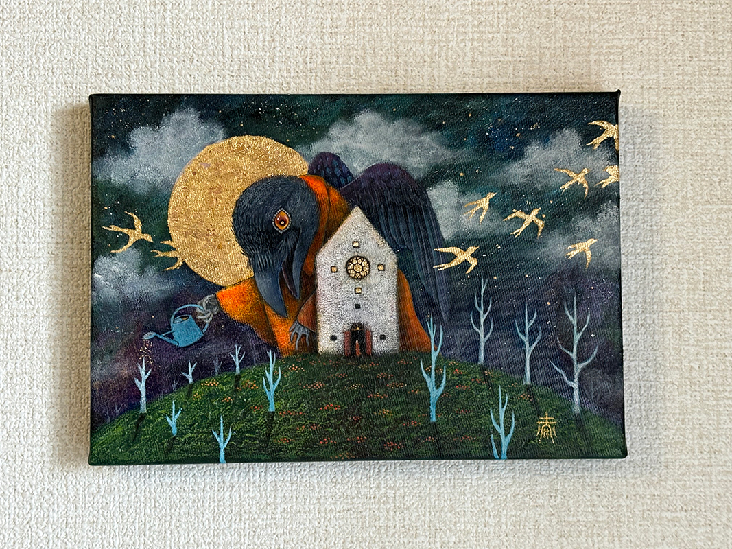 キャンバス、アクリル絵具、金箔、銀箔、メディウム、パール粉、魔法