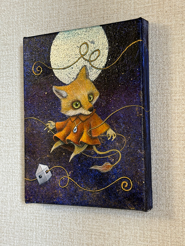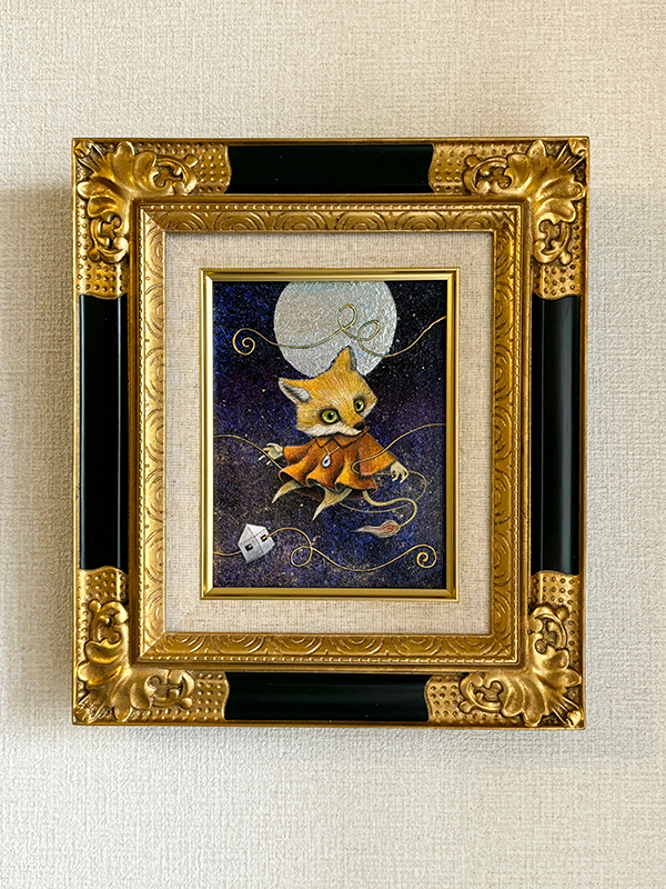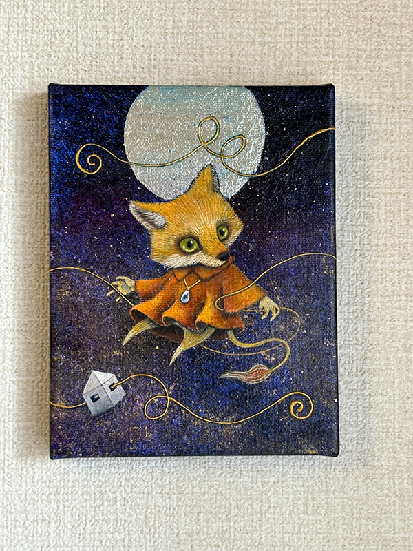 キャンバス、アクリル絵具、銀箔、メディウム、パール粉、ラメ、魔法