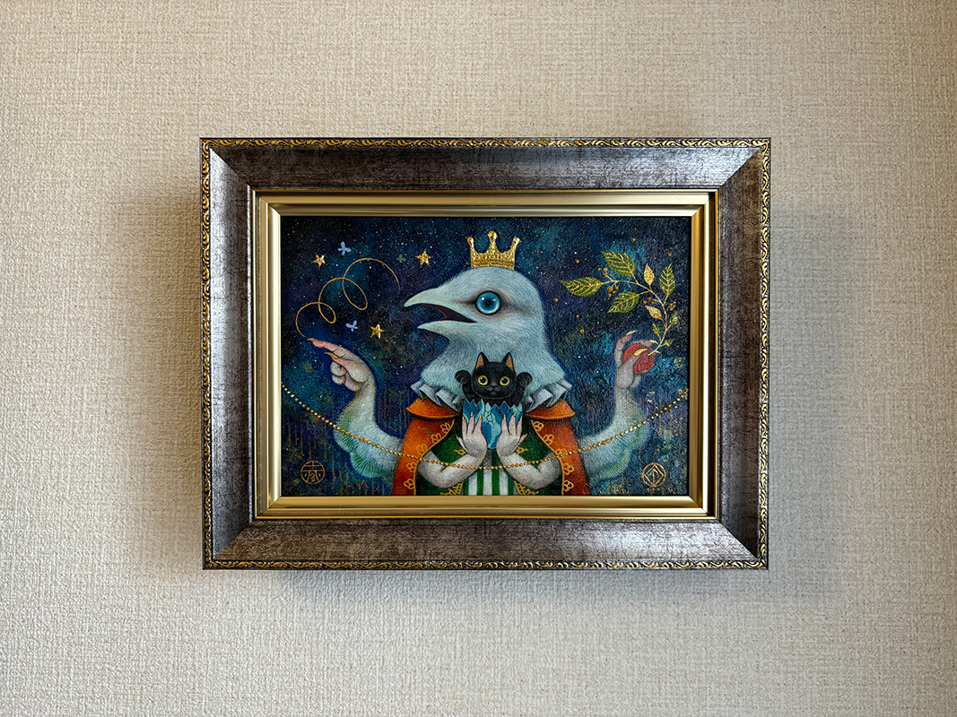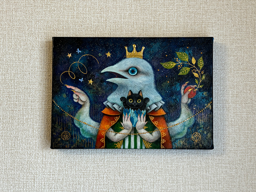 キャンバス、アクリル絵具、金箔、魔法